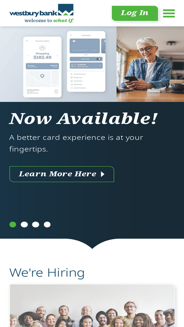 100%Welcome to Westbury Bank. Welcome to What If. Our mission is to meet our goals by helping our people, our customers, our shareholders and our communities meet theirs - and to enjoy the journey.