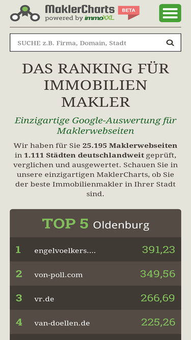Los otros cinco competidores de la lista de los 10 mejores son jacasa.de, robrecht-immobilien.de, hnimmo.de, lagler.de y maklercharts.de.