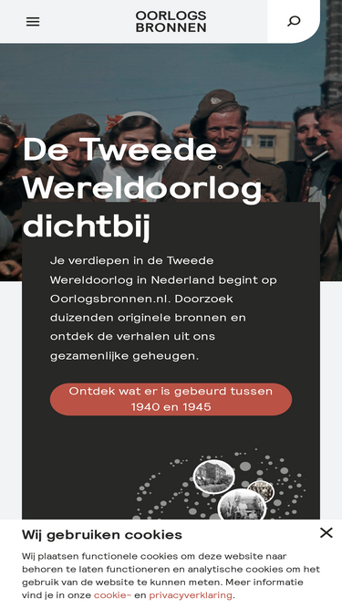 82%Ontdek verhalen, personen en gebeurtenissen uit de Tweede Wereldoorlog in Nederland. Zoek in miljoenen originele bronnen met betrekking tot WO2 uit meer dan 250 collecties en verdiep je in plaatsen, gebeurtenissen, thema’s, kaarten en personen op Oorlogsbronnen.nl.