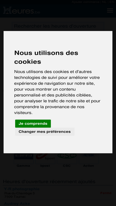 79%sur heures.be vous trouverez les heures d'ouverture des magasins belges. vous ne savez pas si votre magasin préféré est ouvert ? recherchez vite ses horaires ! vous trouverez également ici les magasins ouverts le dimanche.