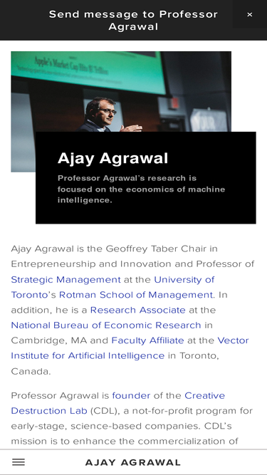 63%Professor Ajay Agrawal is a researcher, writer, teacher, entrepreneur, business strategy advisor, and speaker. He is currently focused on the economics of machine intelligence.
