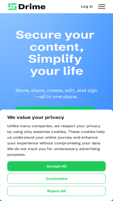 88%Send large files, collaborate, sign PDFs, and access your secure cloud storage from anywhere with Drime. Get 20GB free today!