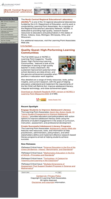 78%the north central regional educational laboratory (ncrel) is one of the 10 regional educational laboratories funded by the u.s. department of education, and its work is conducted by learning point associates. as a member of the regional educational laboratory network, ncrel is dedicated to providing high-quality, research-based resources to educators and policymakers in the states of illinois, indiana, iowa, michigan, minnesota, ohio, and wisconsin.
