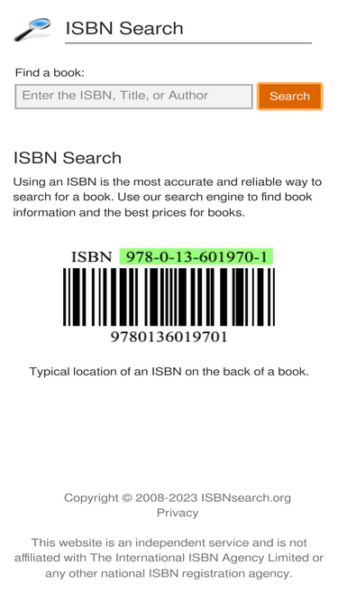 find books easily using isbn, title, or author searches. search using isbn-10 or isbn-13.