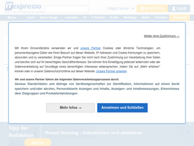 90%ITespresso.de liefert Nachrichten, Tests, Praxisartikel und Markteinschätzungen für kleine und mittlere Unternehmen. Das Informationsangebot stellt somit sämtliche Kaufentscheidungen der Zielgruppe im IT-Bereich auf eine solide fachliche Basis.