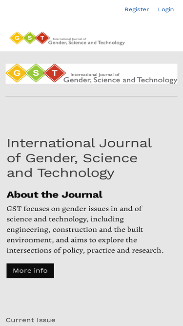 60%gst focuses on gender issues in and of science and technology, including engineering, construction and the built environment, and aims to explore the intersections of policy, practice and research.