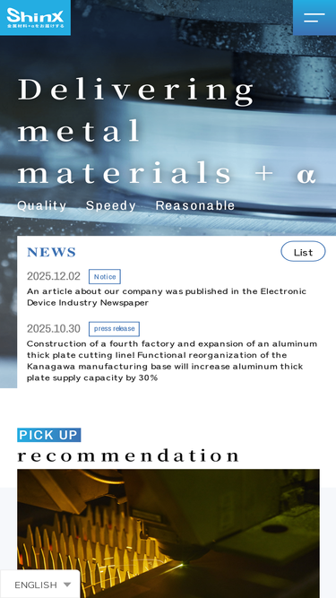 Shinx Corporation Co., Ltd. delivers metal materials and more. Shinx provides metal materials to customers with the optimal shape, precision, lot size, and delivery date.