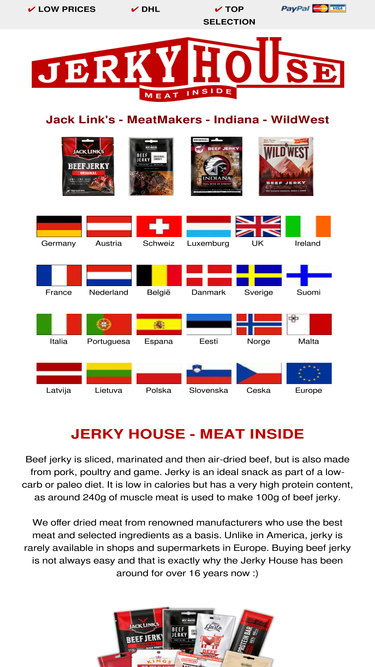 jerky house - beef jerky and biltong shop with dried meat from jack links, conower, indiana, wild west and cruga. beef jerky, biltong and dried fish at reasonable prices, order online.