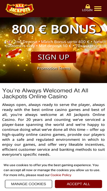 100%We’ve answered all your online casino FAQs in one easily accessible place. Get the information you need to keep playing to win at All Jackpots™ Casino.
