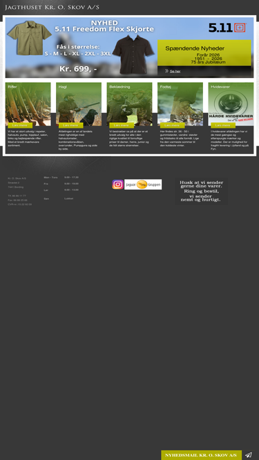 79%firmaet har 65 års jubilæum i år. det fejres med fantastiske tilbud hver måned. vi har mange store xxl str. op til 8 xl. vores tema er altid jagt og outdoor