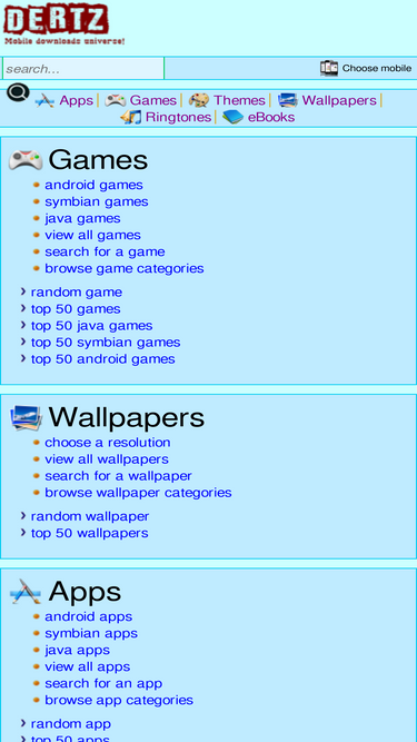 download free games apps themes wallpapers and ringtones for your mobile device from the biggest collection at dertz without registration or any waiting time. direct download links.