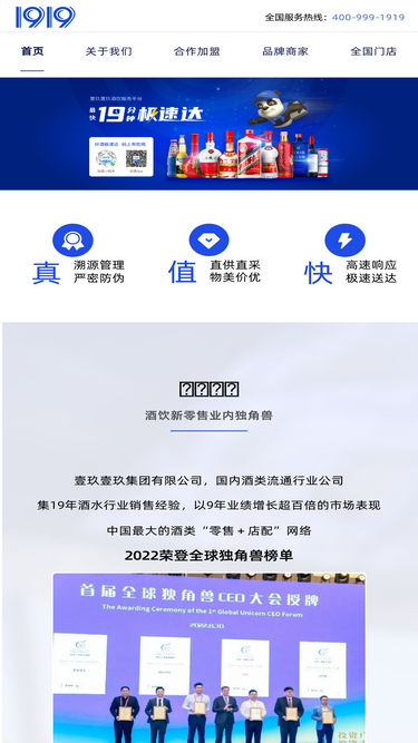 1919酒类直供成立于2006年,线上线下深度融合,线上以1919app及全渠道三方电商矩阵为核心,线下以布局全国1000多个城市超3000家门店为基础,为用户提供最快“19分钟极速达”的购酒体验。