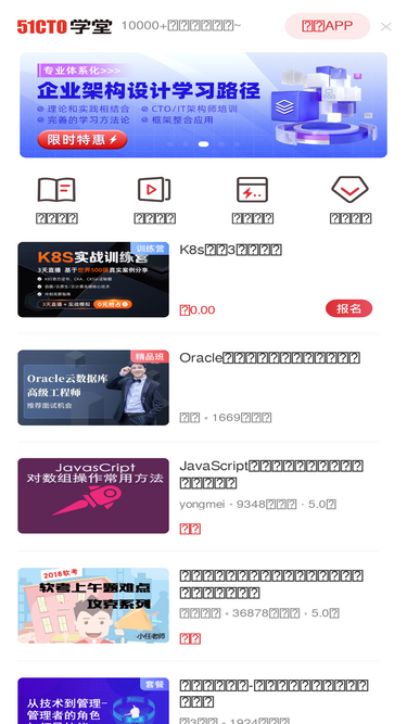 51cto学堂为it技术人员终生学习提供最丰富的课程资源库,数千名专业讲师和大厂工程师倾力分享了数万门在线视频课程,几乎覆盖了it技术的各个领域:java、python、php、c、前端、数据库、区块链、运维等,帮助每个渴望成长的it技术工程师技能提升,学有所成!