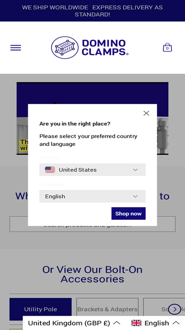 78%2x Interclamp Single lugged tube clamps and 2x M10 bolt and washer assemblies for attaching a sign to a shipping container using our utility pole kit. This offers two attachment points at your chosen height on a vertical 48mm tube. It can be used for attaching signs and other equipment to the top of a shipping container using our shipping container utility pole kit. If you require the kit including a Domino Clamp and aluminium tube click here