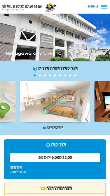 58%【公式サイト】大阪府寝屋川市にある寝屋川市立寝屋川市民会館は、大・小ホールや多目的室、会議室等諸室を備えた文化施設です。公演・イベント情報、施設紹介、ご利用方法など。