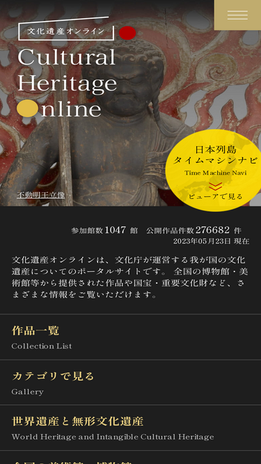 90%文化遺産オンラインは、文化庁が運営する我が国の文化遺産についての電子情報広場(ポータルサイト)です。全国の博物館・美術館等から提供された作品や国宝・重要文化財など、さまざまな情報をご覧いただけます。