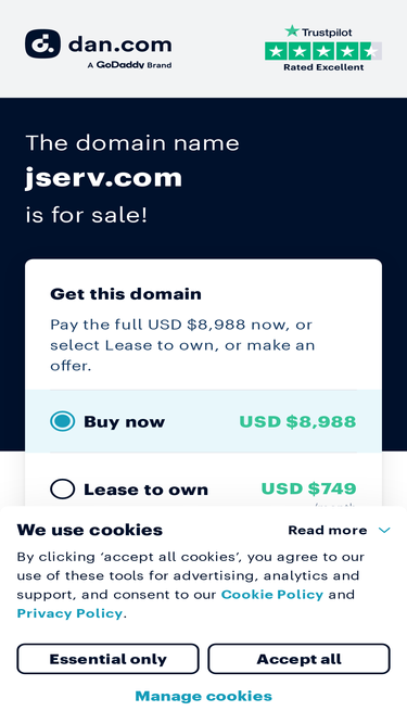 the domain name jserv.com is for sale. make an offer or buy it now at a set price.