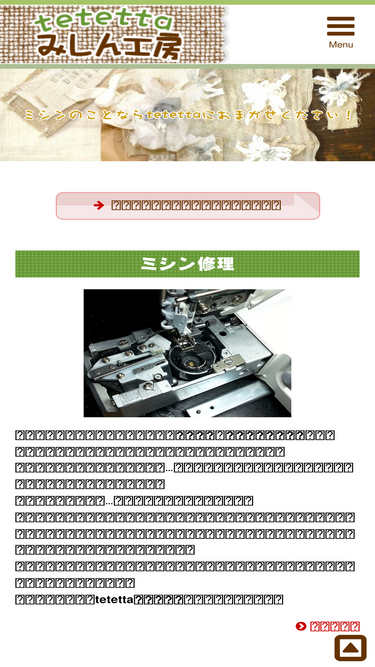 88%ミシン修理・ミシン販売を全国対応にておこなっておりますtetettaみしん工房です。ミシンは一般家電とは少し異なり、使い方やメンテの有無でプチトラブルが発生する事がございます。そんな時に直ぐにサポートを受けられる、万が一の故障時でも直ぐに対応してもらえる、そんな強みが当店にございます。特にミシン修理技術には大変自信がございまして、年間平均700台強のメンテナンスや修理をさせて頂いており、修理ブログにて分解画像を公開中でございます。ミシン修理料金の目安は事前にご案内させて頂きます。ミシン販売も修理技術者の観点から厳選したオススメのミシンを中心に、納得した一台をご提案し丁寧に販売させて頂いております。