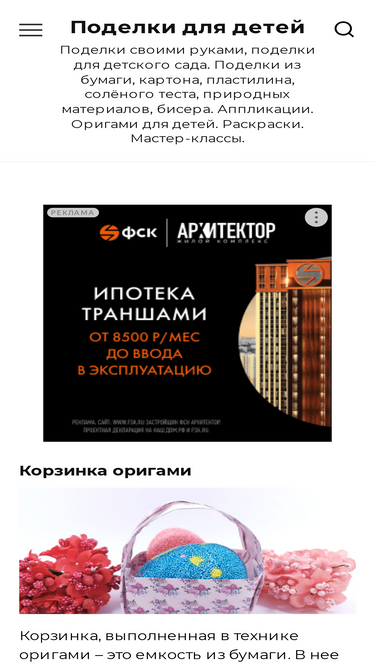 важную роль в развитии ребенка играют поделки. сайт «детские поделки» поможет вашему ребенку изучить различные материалы, познакомит его с окружающим миром.