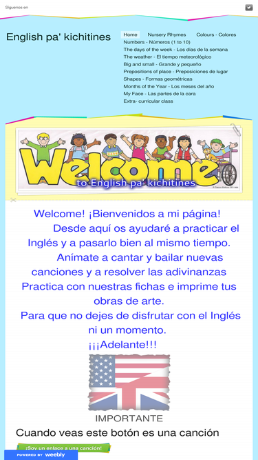 90%welcome! ¡bienvenidos a mi página! desde aquí os ayudaré a practicar el inglés y a pasarlo bien al mismo tiempo. anímate a cantar y bailar nuevas canciones y a...