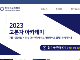 80%한국고분자학회는 고분자 분야의 학술지 발간과 연구발표회를 통해 학문과 기술 발전에 이바지하는 사단법인 학술단체입니다.