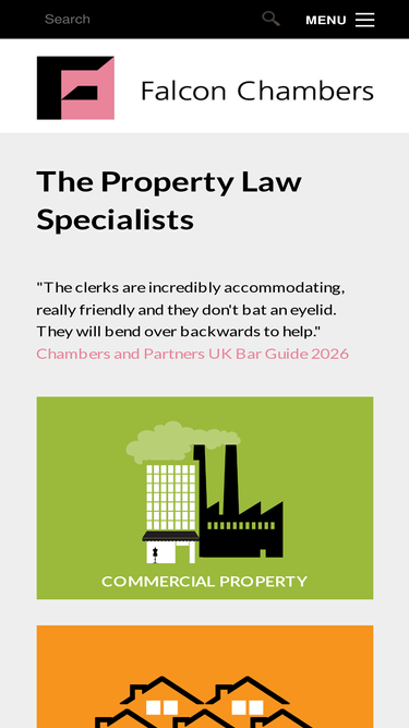 94%falcon chambers specialises in litigation and advice on all aspects of the law of property and matters relating to it. falcon chambers is regarded as one of the leading sets for property litigation and commercial property, as well as landlord and tenant and agricultural law.