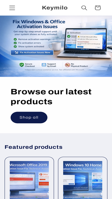 86%Keymilo helps fix Windows and Microsoft Office activation issues with step-by-step email support. Fast response, clear guidance, and independent technical assistance.