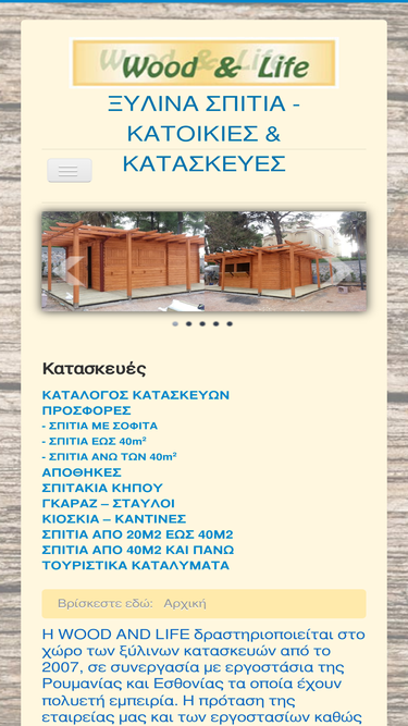 58%η woodandlife δραστηριοποιείται στις ξύλινες κατασκευές κάθε τύπου και σχεδίου, από το 2007, σε συνεργασία με εργοστάσια, στην ολλανδία, εσθονία, λιθουανία, ρουμανία