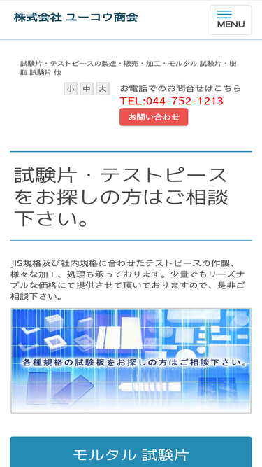 88%試験片・テストピースの製造・販売・加工。モルタル 試験片・樹脂 試験片、建築、塗料、接着、樹脂、金属、非鉄金属、各規格の試験用基板、JIS規格及び社内規格に合わせたテストピースの作製、様々な加工、処理。少ロットも歓迎