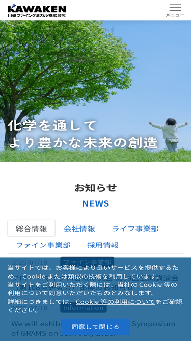 89%川研ファインケミカル株式会社は化成品・医薬中間体・界面活性剤・化粧品基剤などの研究開発・製造する化学品メーカーです。ライフ事業部・ファイン事業部の2つの事業部が中心となり、時代のニーズに応える製品を提供しています。