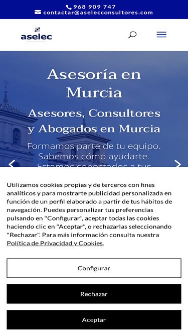 85%Contactar con ASELEC Consultores en Murcia. Visítanos en Plaza Santo Domingo,18 2º Planta. 30008 Murcia Tlf. 968 909 747.