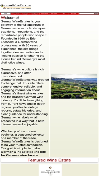 93%the ultimate site for german wine lovers, with reference information, tasting notes, german wine label comprehension, regional descriptions, vintage reports, wine estate data and much more.