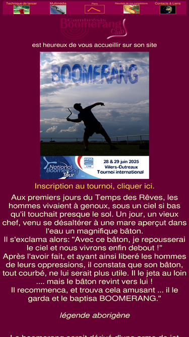 100%le site du club de boomerang de cambrai dans le cambrésis, infos, astuces, vidéos,