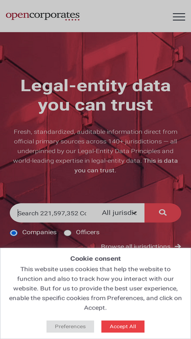 74%Access fresh, standardized, and auditable legal-entity data from 140+ jurisdictions. Trust OpenCorporates for reliable company information.