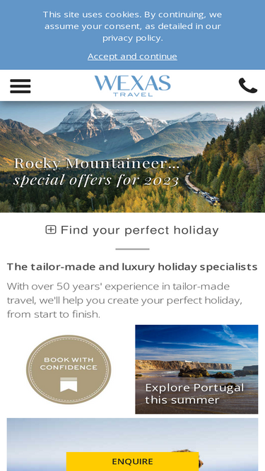 72%The specialists in tailor-made holidays. Wexas Travel provides personal service and expert advice across all seven continents. Begin your journey today.