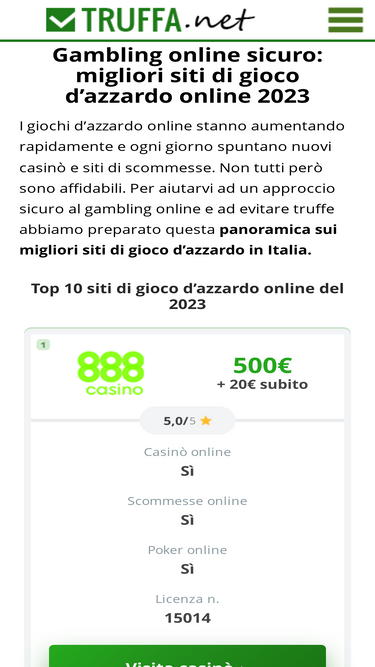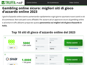Los otros cinco competidores de la lista de los 10 mejores son truffa.net, 888.it, lottomatica.it, giocodigitale.it y starcasino.it.