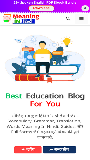 100%Meaninginhindi is an educational blog where you learn English-Hindi word meaning, translation in Hindi, हिंदी अर्थ, Guides, grammar, vocabulary, full forms, definition, and many more.
