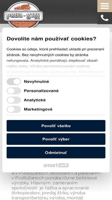 88%Kontaktné informácie Prevádzky betonárky Betonárka Topoľčany Zámočnícka dielňa Prefa Podlužany Lom Závada