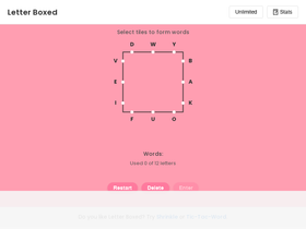 Según los datos de visitas mensuales de Similarweb, el principal competidor de letterboxed.io en febrero 2026 es letterboxedgame.com. El segundo sitio más similar a letterboxed.io es letterboxedanswers.com, y completando el podio se encuentra wordleunlimited.io.