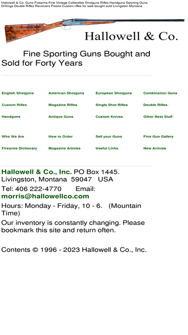 hallowell & co. is a retail store in livingston, montana with hundreds of fine collectible and vintage sporting guns on display for sale. rifles, pistols, shotguns, double rifles, colts, winchesters, purdeys, parkers, etc.