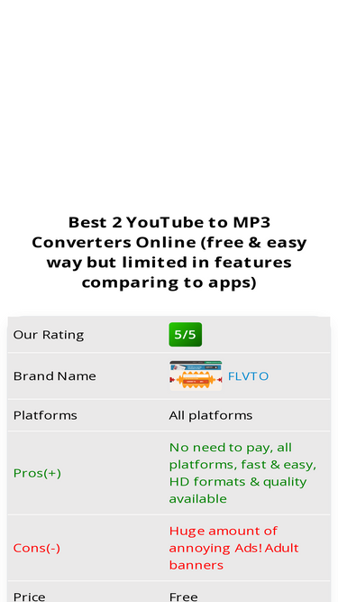 Los otros cinco competidores de la lista de los 10 mejores son convertmemp3.com, drag-race.livejournal.com, flvto.com, vidtomp3.com y video2mp3.net.