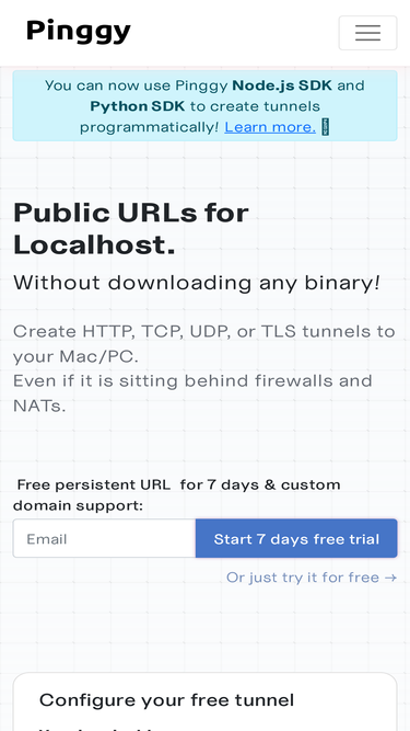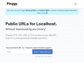 98%Pinggy is the simplest way to bring your localhost projects online. It the the fastest way to create secure tunnels to localhost with a public url.