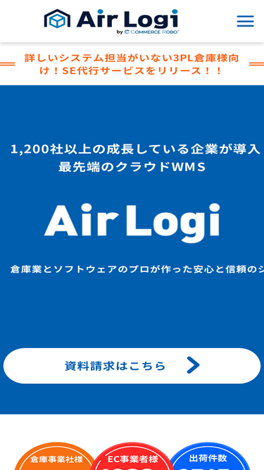 64%クラウドwms「air logi」は、物流会社、3pl、ec企業、大手小売が利用するクラウドwmsです。柔軟にカスタマイズ、ロボット・マテハン連携、ネクストエンジンapi連携。