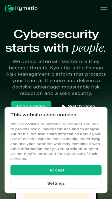 74%Schedule a personalized demo of Kymatio's human cyber risk intelligence platform. See how we help organizations detect internal threats and reduce human cyber risk. Book your demo today.