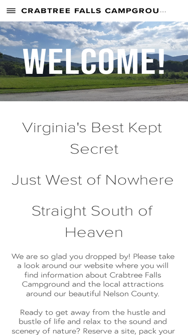 35%Welcome to our little slice of Heaven! We are a small, family run campground located a 1/2 mile below Crabtree Falls and along the Tye River.
