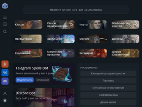 70%TTG.Club - сайт, посвященный DnD 5-й редакции. Тут можно найти: расы, происхождения, классы, заклинания, бестиарий, снаряжение, магические предметы и инструменты для облегчения игры как игрокам, так и мастерам - все в одном месте.