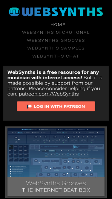59%Home WebSynths Microtonal WebSynths Grooves WebSynths Samples WebSynths Chat
