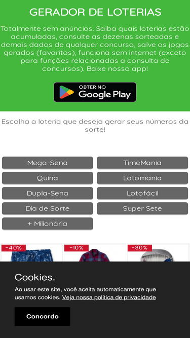 86%Não fique na dúvida na hora de escolher seus números. Gere seus números da sorte da Mega-Sena, Timemania, Quina, Lotomania, Dupla-Sena e Lotofácil