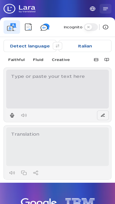 100%Мгновенно переводите тексты, разговоры и документы более чем на 200 языков с помощью переводчика Lara, самого надёжного в мире переводчика на основе ИИ.