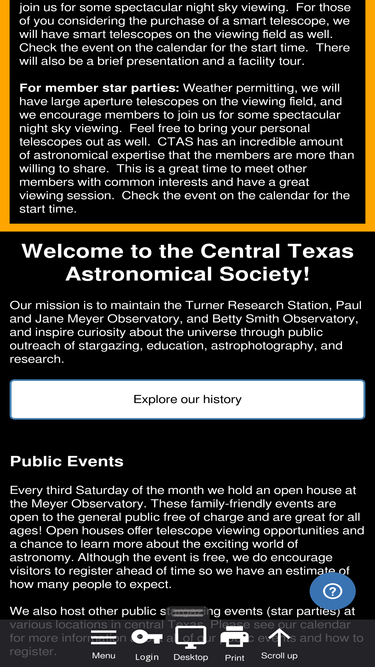 97%Maintain Turner Research Station, Meyer Observatory, and to inspire curiosity about the Universe through pubic outreach of stargazing, education, astrophotography, & research.